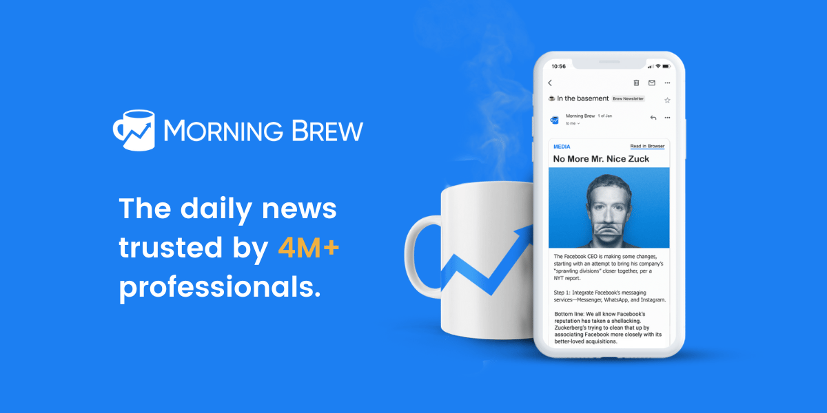 There’s a reason over 4 million professionals read Morning Brew - the free daily newsletter condensing business news into bite-sized, enjoyable stories