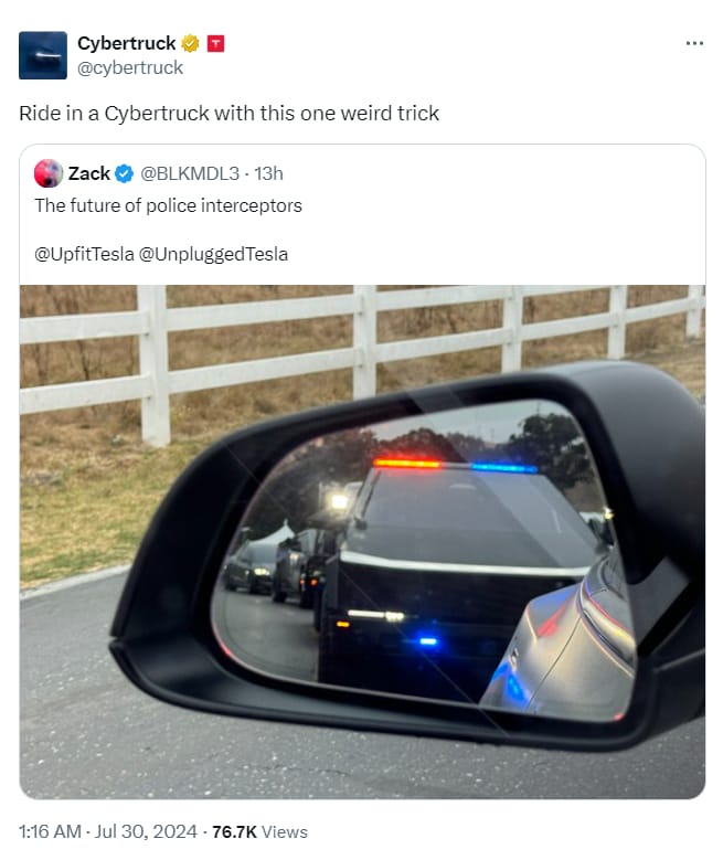 The @cybertruck account is my favorite Tesla-affiliated one on X, just because of this stuff.