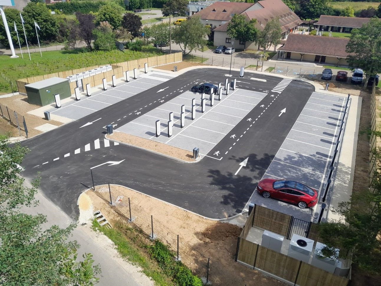 The layout on this France one, including the pull-through charging spot in the back and the positioning to cater to the non-Teslas charging… 👌