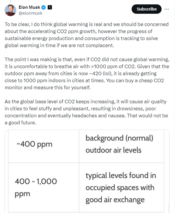 Elon’s take on CO2;