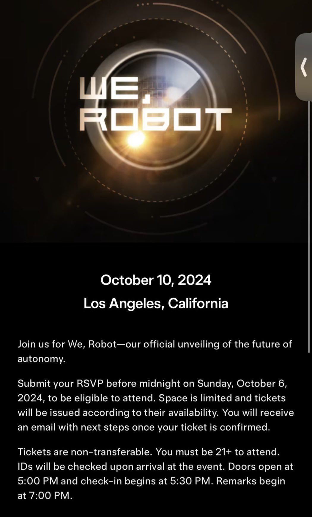 Tesla sent out the invites for the shareholder raffle and some influencers. They call the event “We, Robot”.