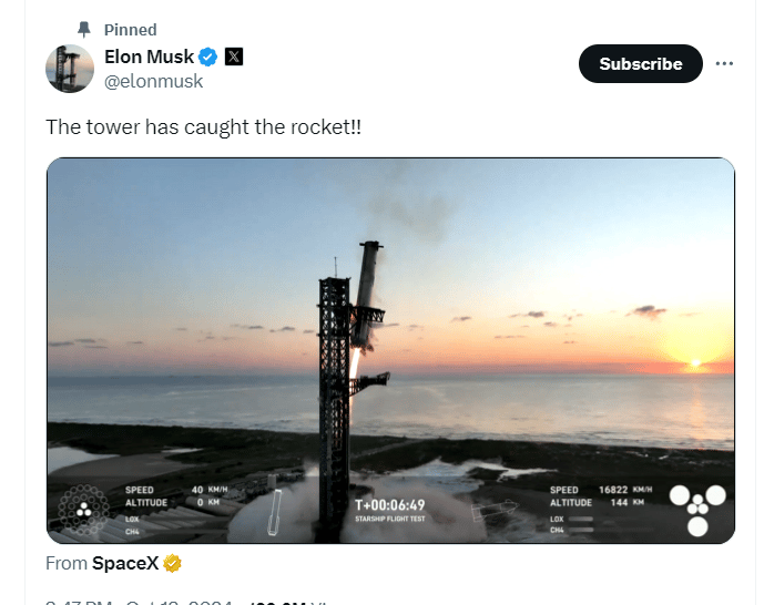 You just have to see this video of Mechazilla catching the Starship flight five Booster. I still can’t believe it.