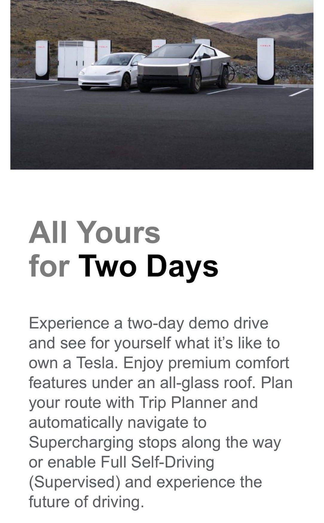 Tesla starts offering two-day test drives, per their recent email:
