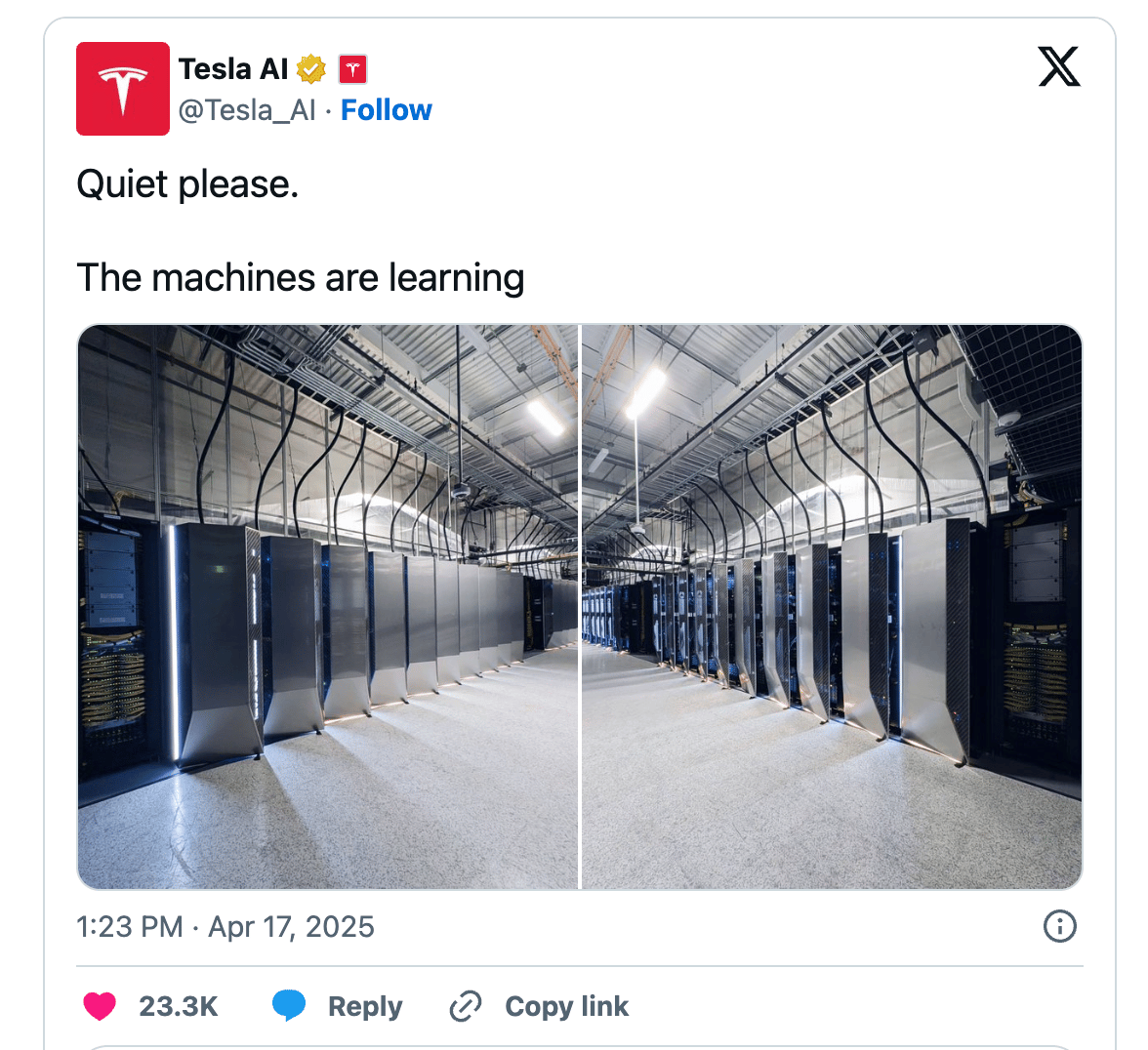 Also, here’s a post from Tesla’s AI account: