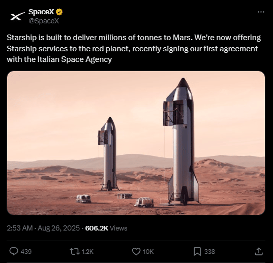 Oh, and… SpaceX finally officially confirmed the small bit of info what we shared with you weeks ago — it has its first customer for services to Mars, with the Italian Space Agency.