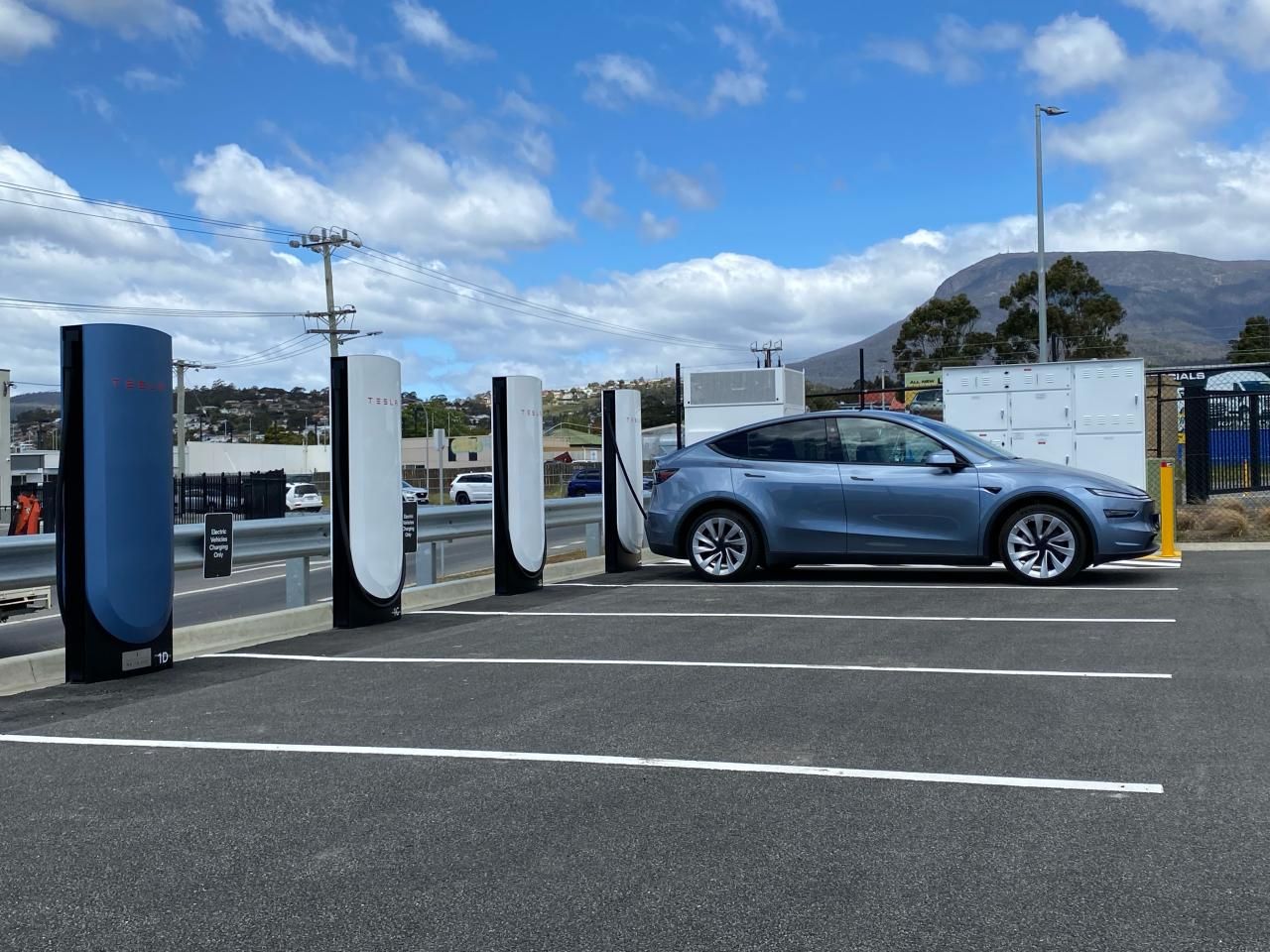 The Glacier Blue wrap marks the milestone 75,000th Supercharger which was deployed in Tasmania, Australia. It fits in well with the Glacier Blue Model Y (picture & the car by Mark Davis, Tesla Store Manager in Hobart, Tasmania, where this charger was deployed):