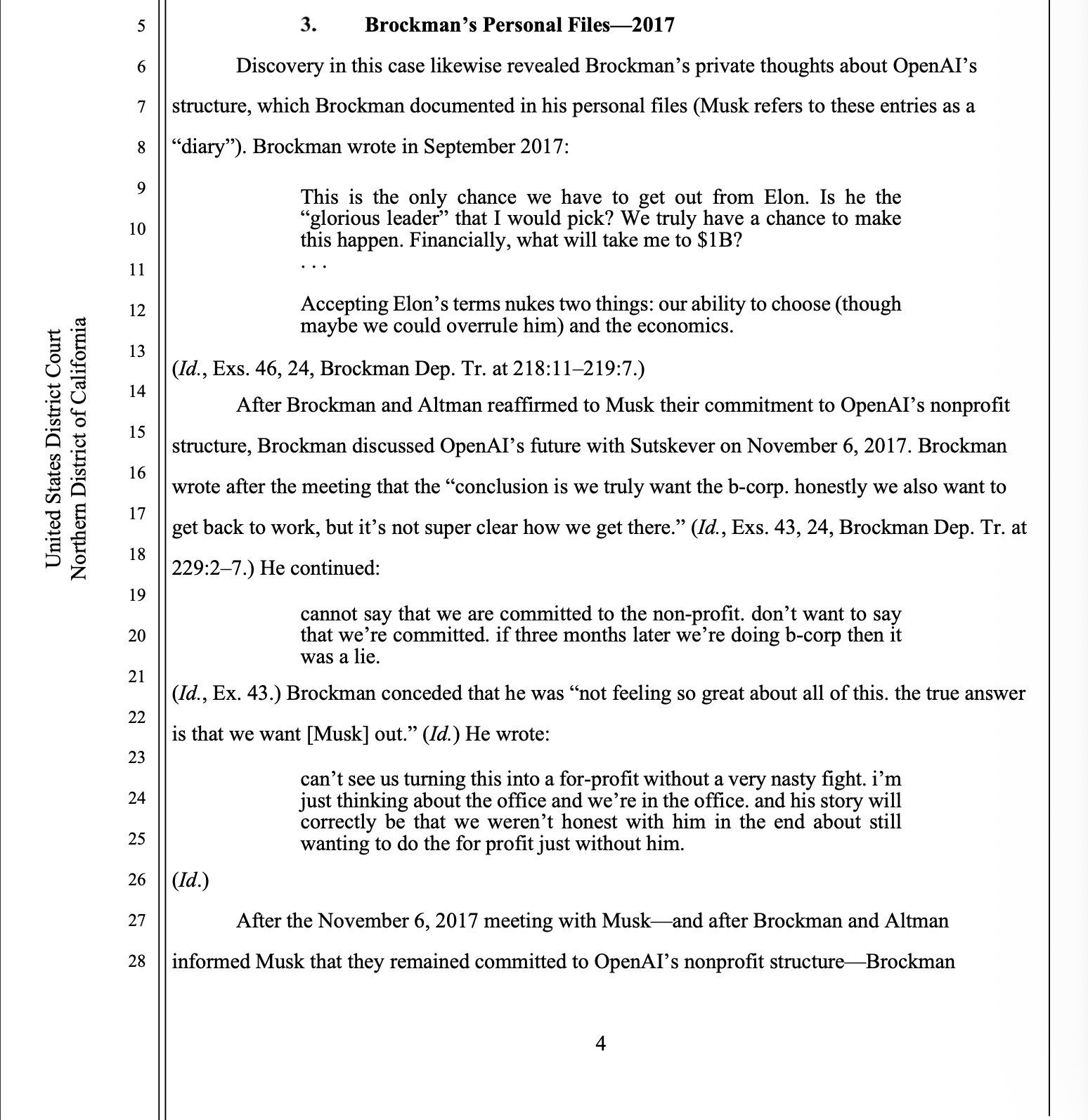 The big part that came out was this where it seems that Brockman's discussions with Sama showed they know very well what they did in pushing Elon out and planning to go non-profit to profit, knew it was wrong and did it anyway.