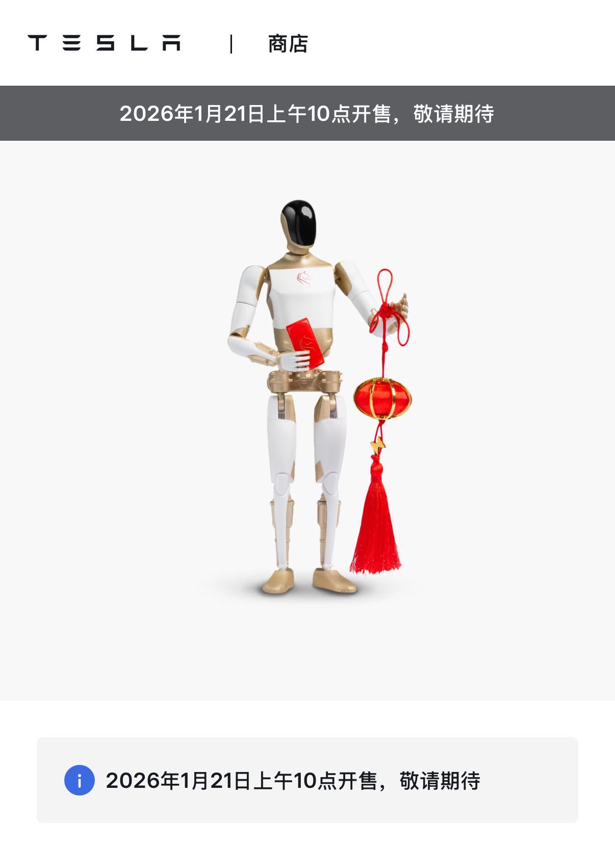 Tesla Shop in China has added a Lunar New Year item, the “Special Edition of the Year of the Horse” Optimus figure: