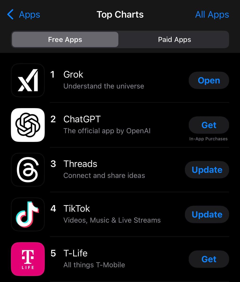 With the Grok 3 launch, the app has made it to the #1 spot on free apps on the Apple’s App Store in the US.