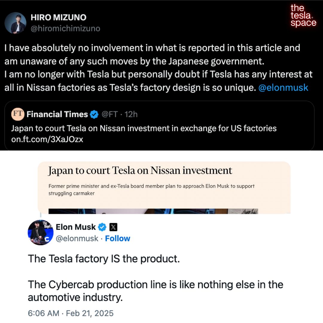 Tesla has no use for Nissan's factories in the US… why would they want inferior technology and spaces? Also, FT was obviously way off on Hiro's involvement here. I’ve gathered for you the two data points you need: