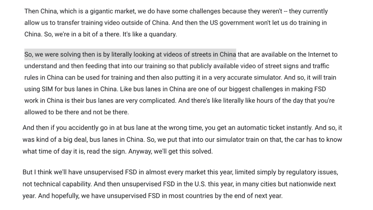 In case you wonder why that is, Elon talked about the challenge in the previous earnings’ call — basically they can’t train with the live fleet yet due to China not allowing the feed to be sent to US servers: