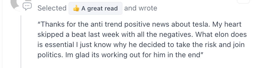 We’re done for today! We strive to be the most value-packed yet concise Tesla-related newsletter out there. How did we do?