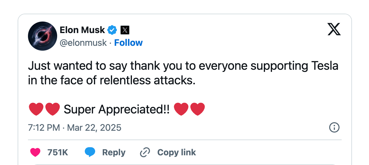 Another one of Elon’s appreciation posts on X with a bunch of hearts… we’re doomed aren’t we?