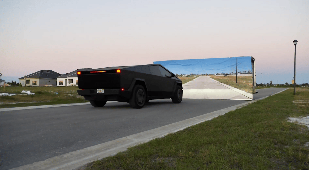 Tesla Cybertruck with Hardware 4 (HW4) using FSD v13.2.8 did not hit the wall in a new recreation of Mark Rober's "Wile E. Coyote-Style" self-driving test. Success.